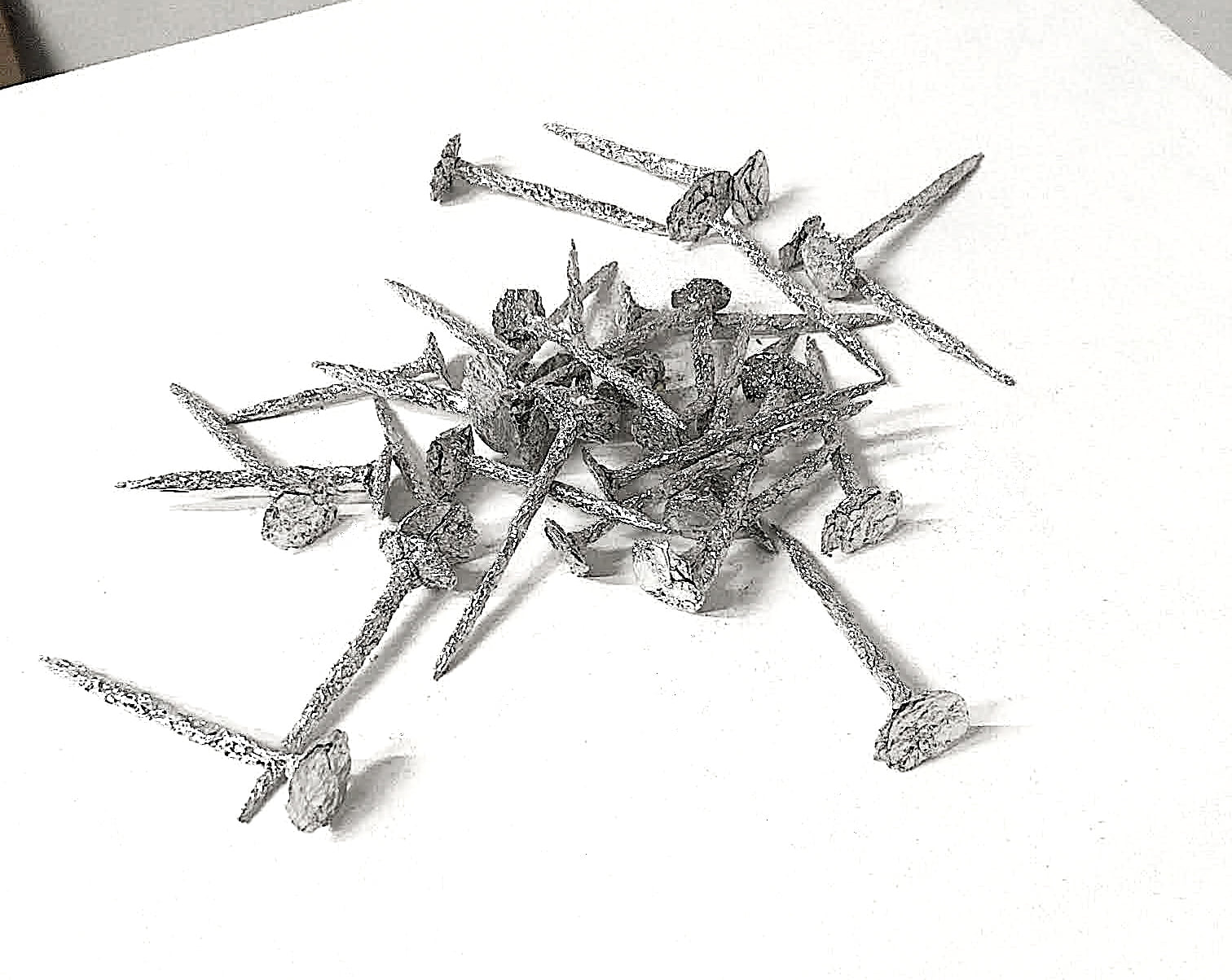 Untitled (Tomorrow Tools), 2019, bones, enamel, wood, dimensions variable. Exhibited in group show “Trabalho Capital. Ensaio sobre Gestos e Fragmentos”, curated by Paulo Mendes, Oliva Creative Factory, São João da Madeira, 2019.