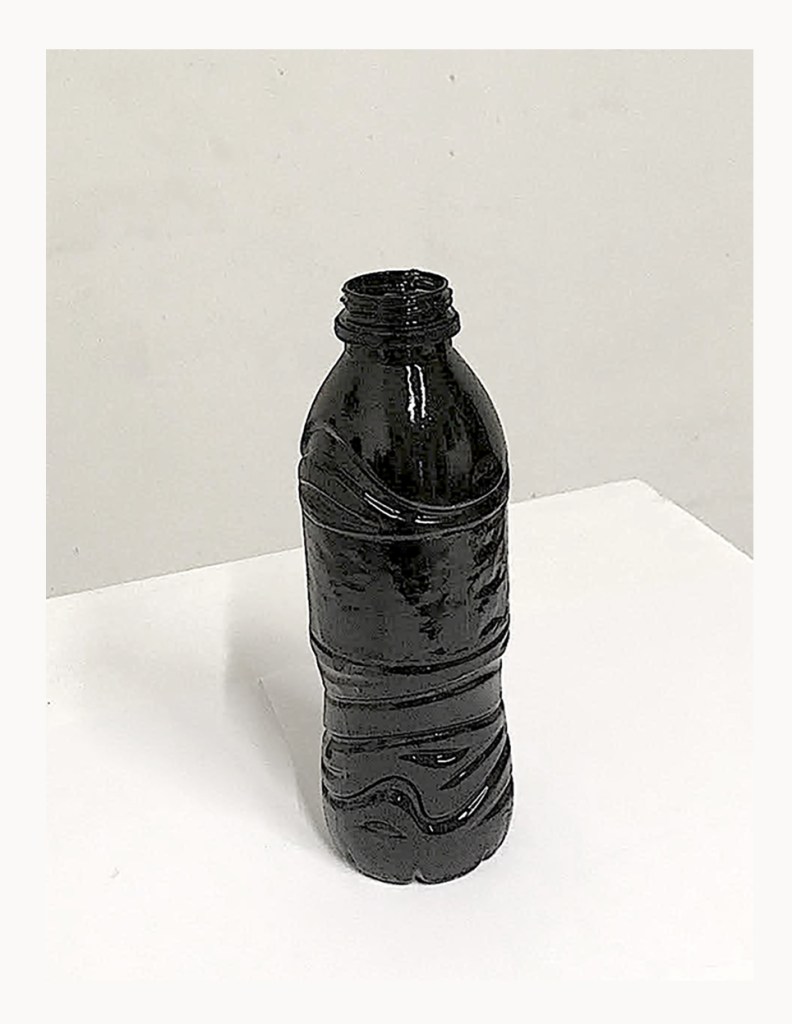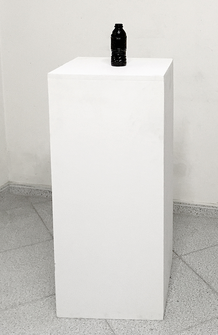 Trash #2, 2021, plinth, bottle, spray, 132x40x40 cm
